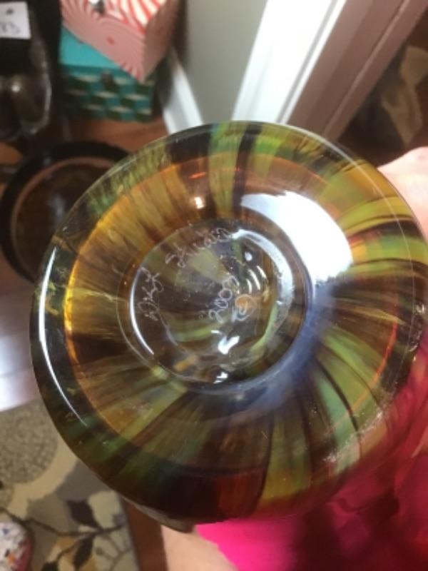 Q - 1303  Signed DKL Studio’03 , Hand-blown Glass Vase