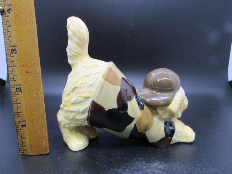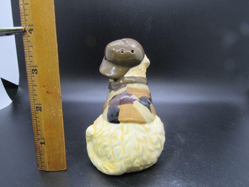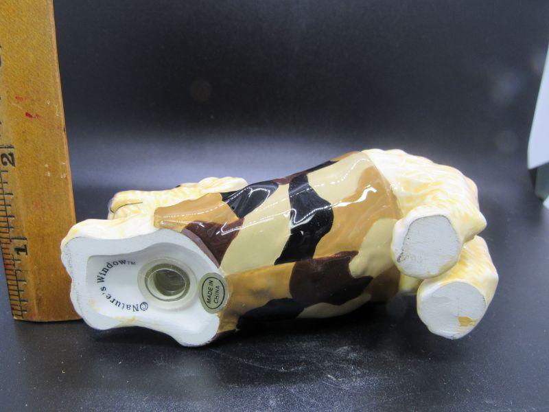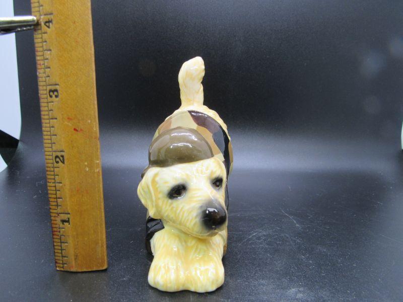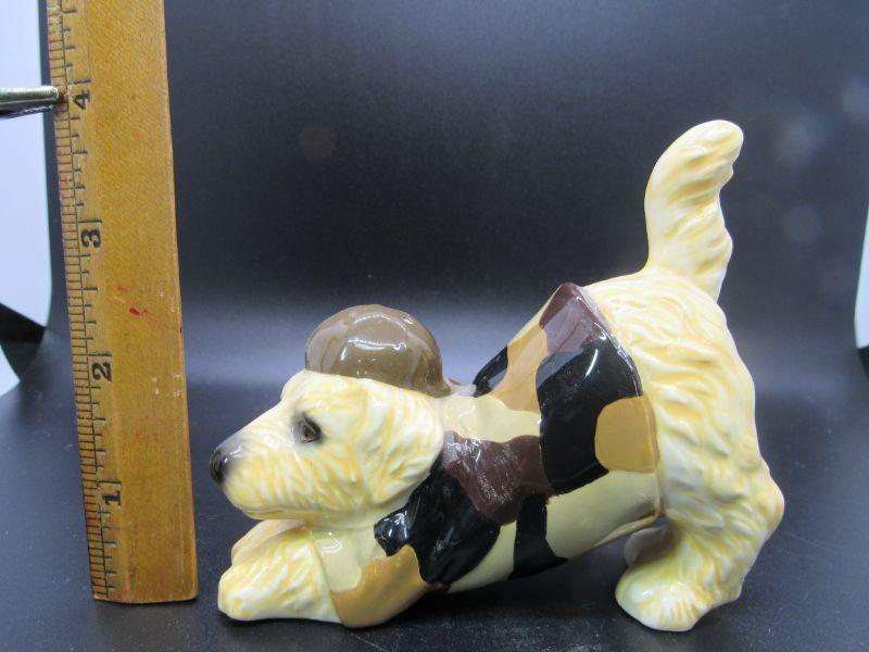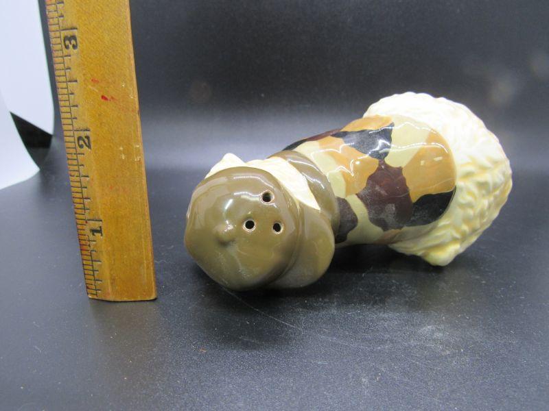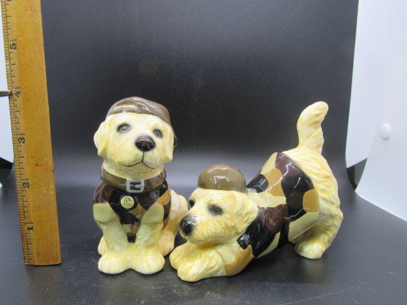 Super cute yellow dog shaker set. Camo wearing golden retriever salt and pepper shakers by Nature's Window. Good condition. #029-0024