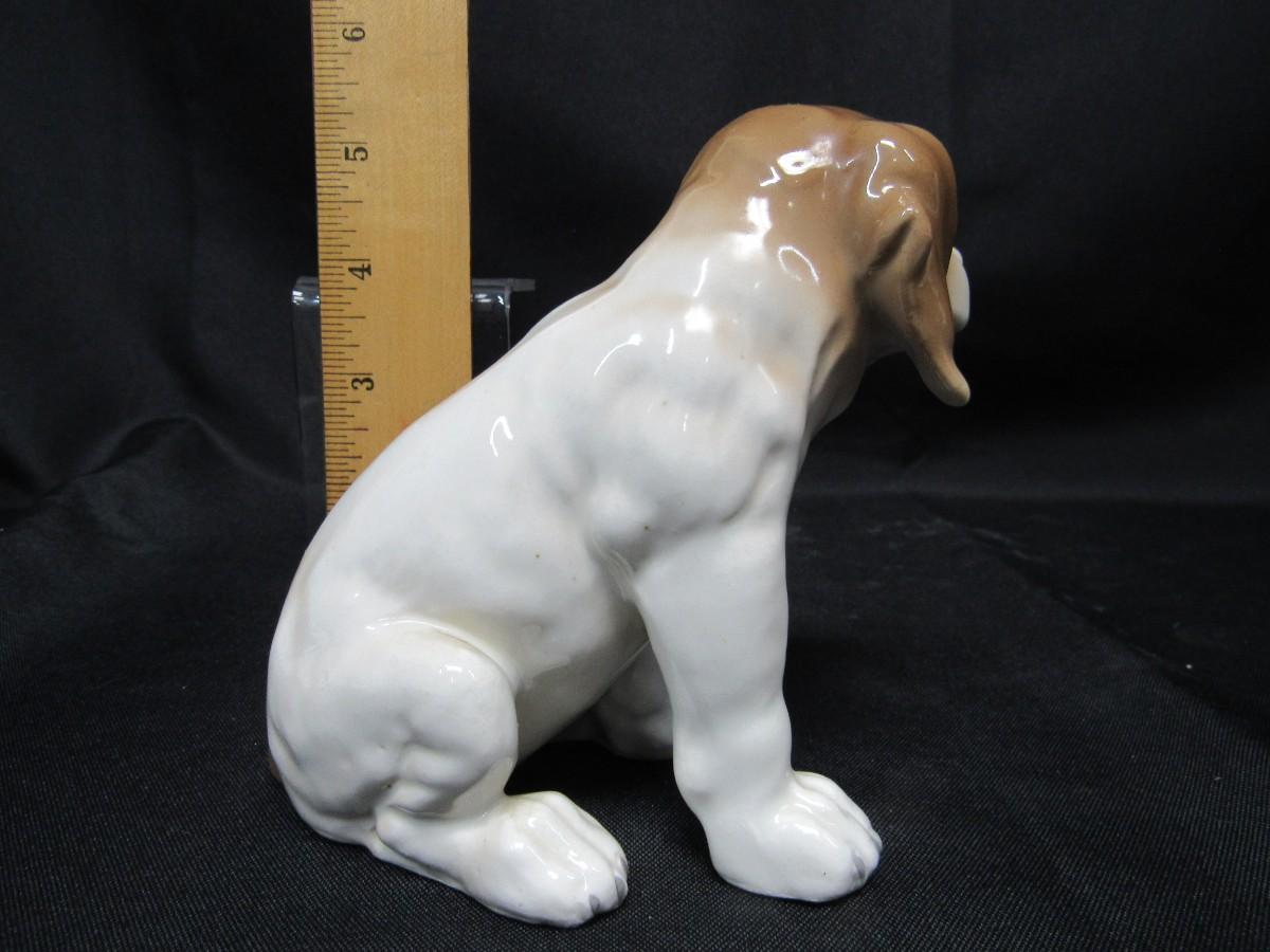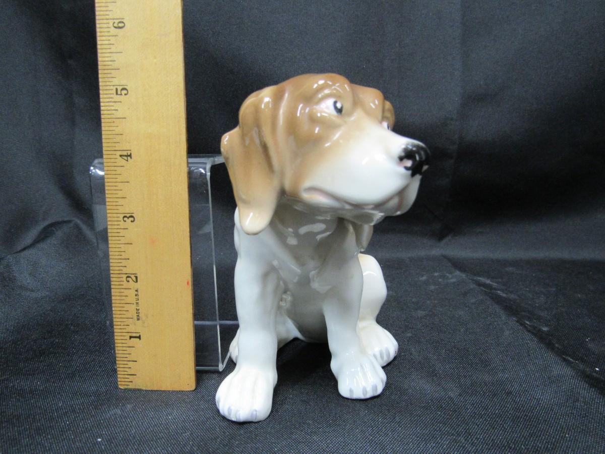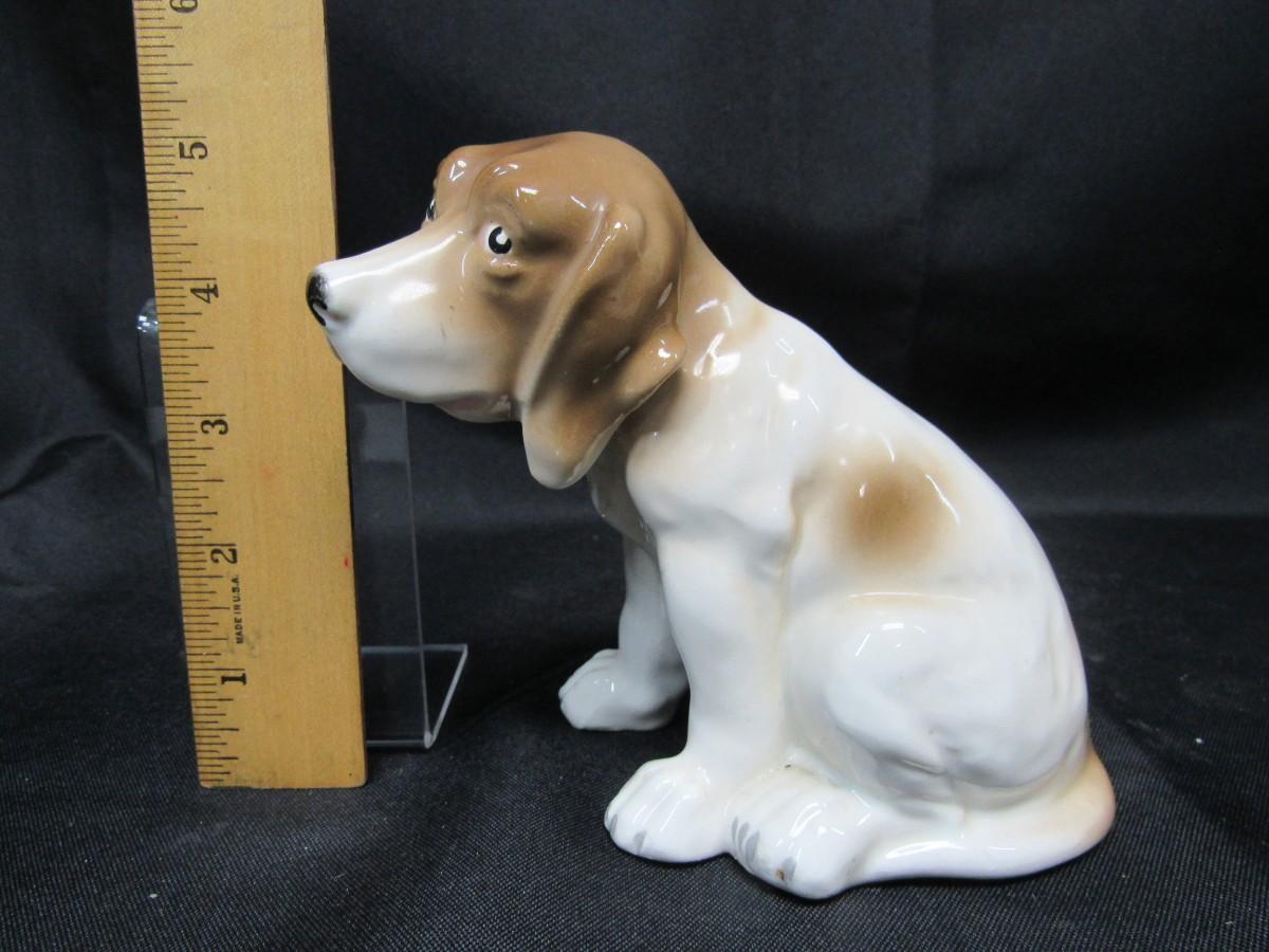 Vintage White & Tan Sitting Dog Figurine