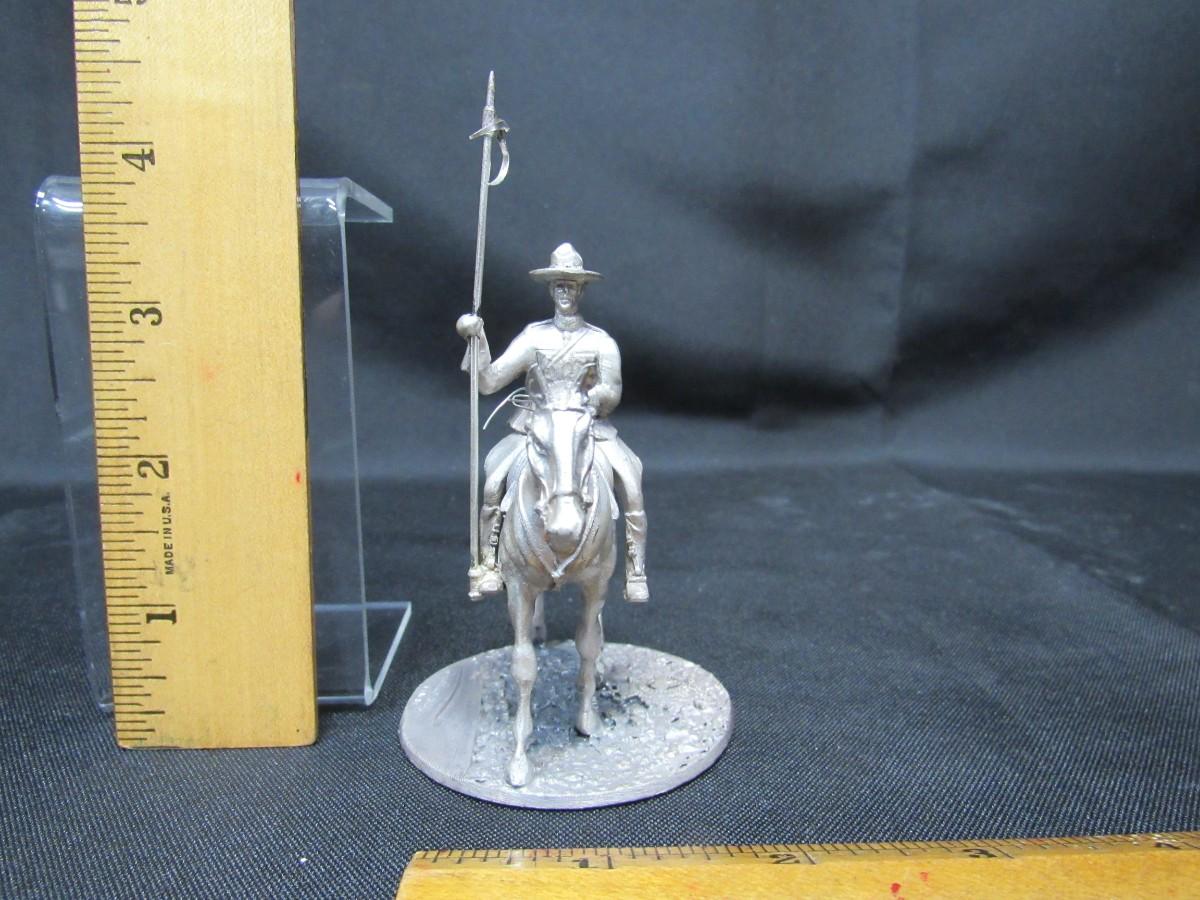 Pewter Metal Miniature Mountie Man on Horseback Figurine