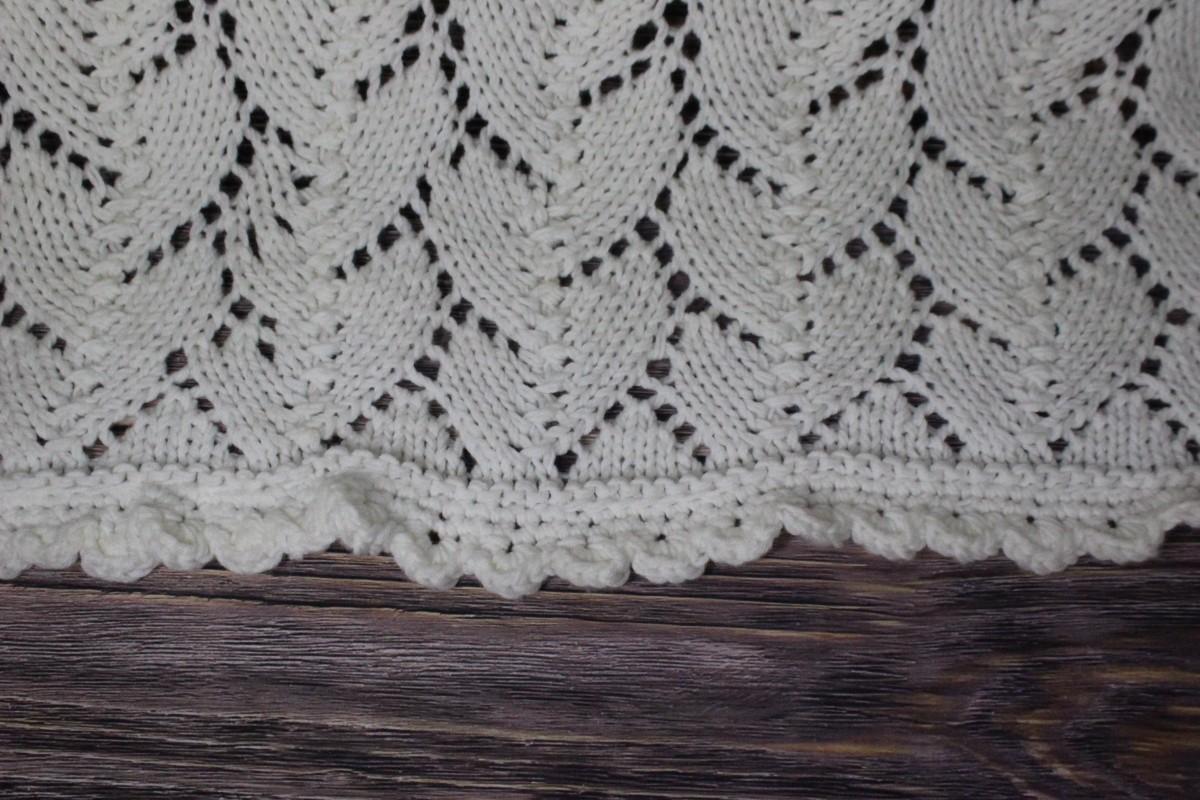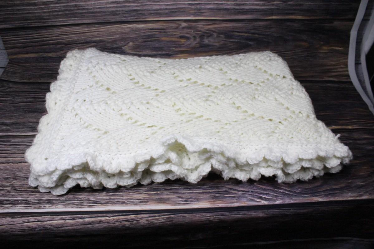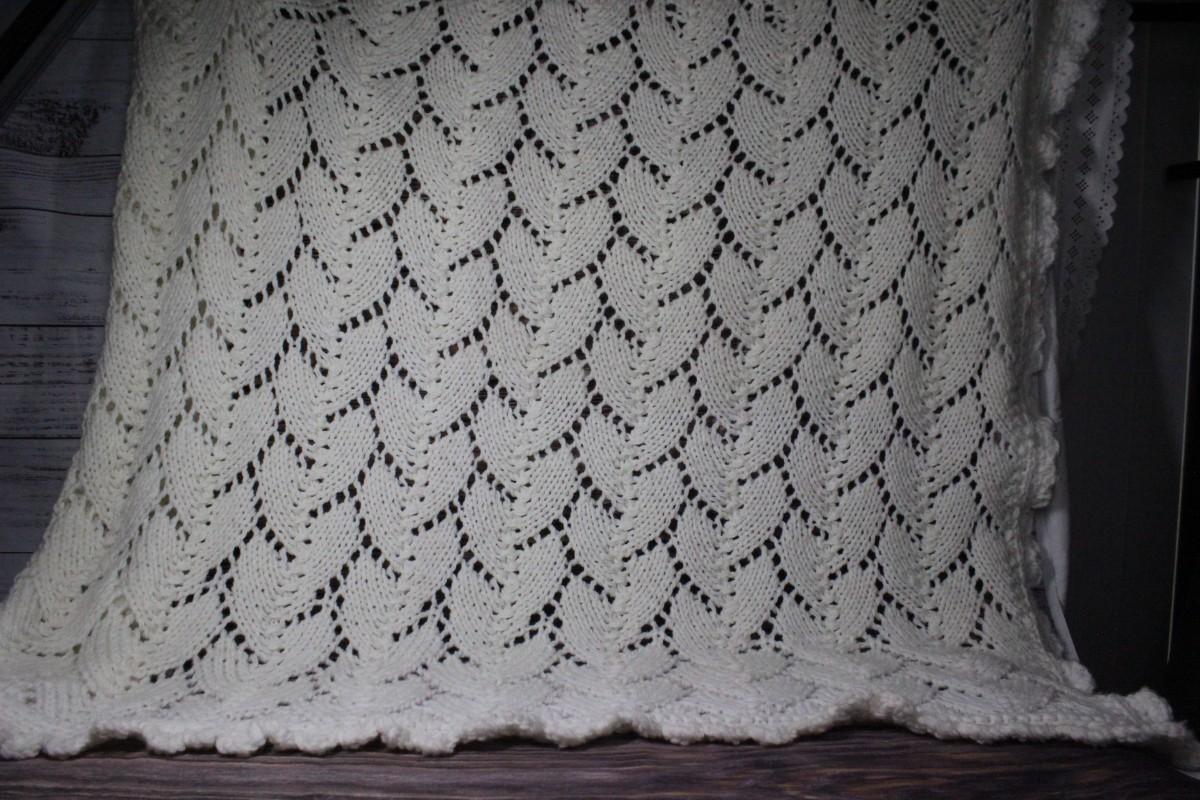 Vintage white leaf pattern crochet afghan small throw blanket, measures to about 5 ft. long and 3 ft. wide.