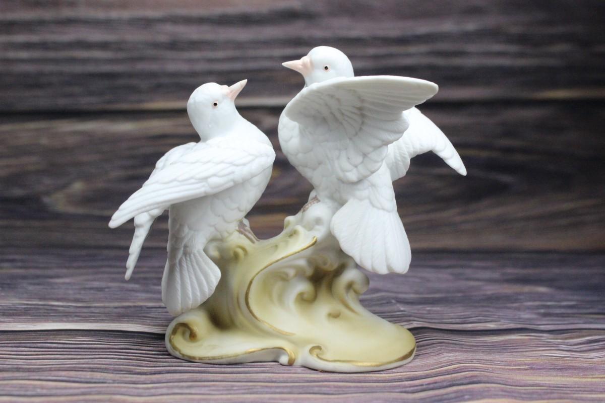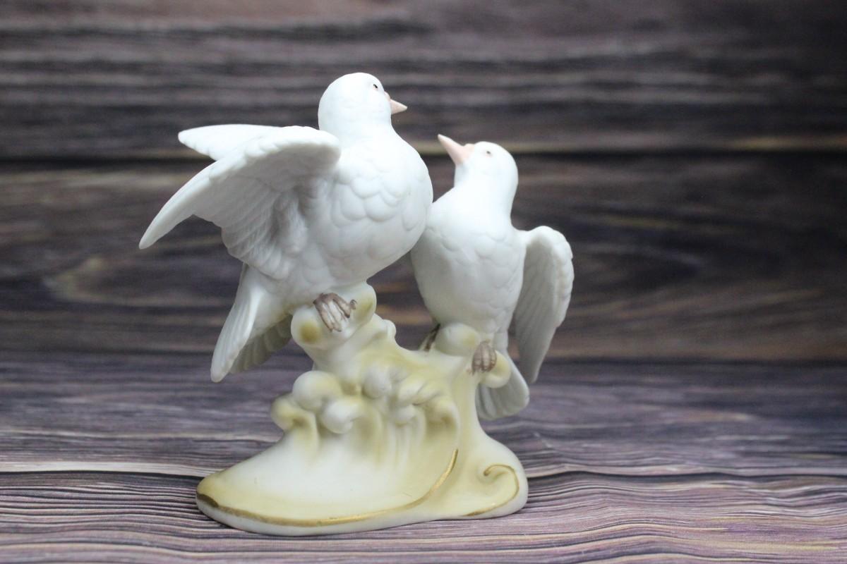 Vintage Lefton white doves figurine. Good condition. Has original sticker on the bottom. About 5" size.