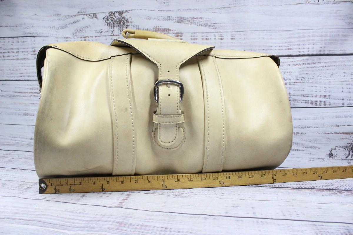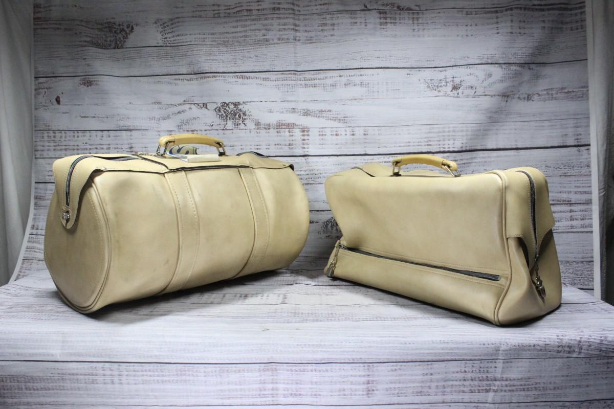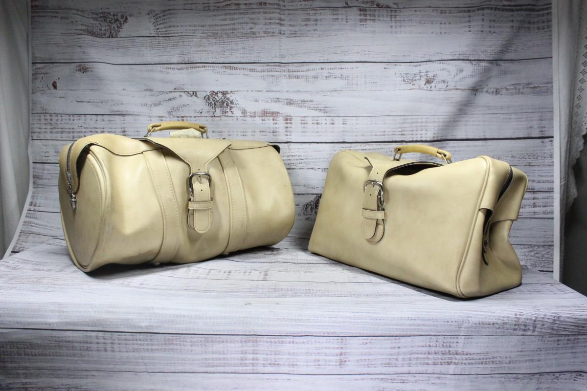Pair of Vintage Beige Travel Duffel Bags, there are no rips or tears on either of the bags and is in good vintage condition. Check photos for sizing and for more details.