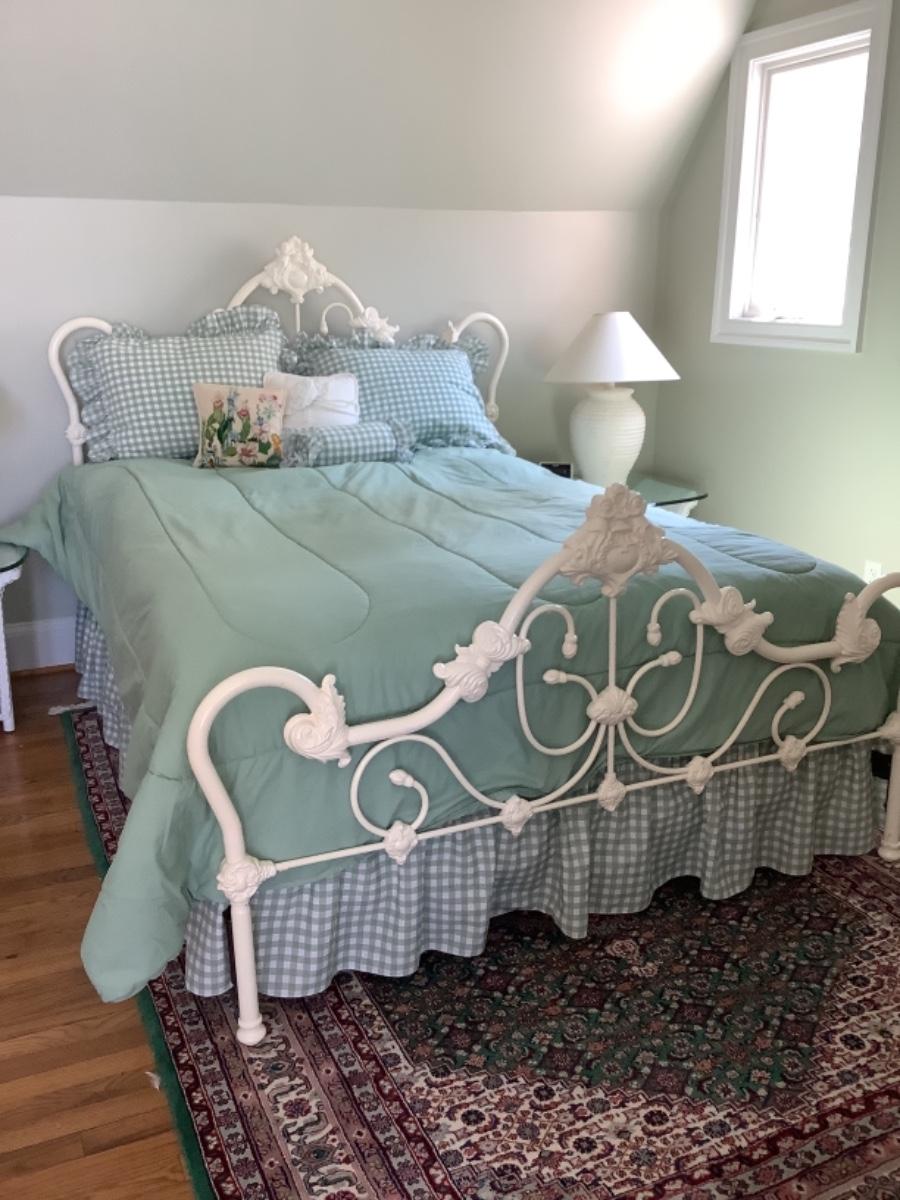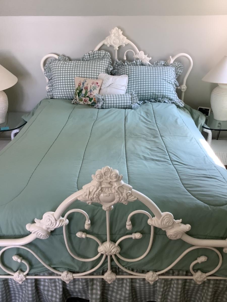 Q1036 Painted White Iron Queen Bed with Bedding