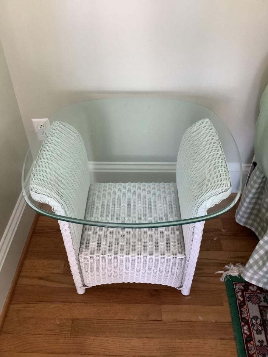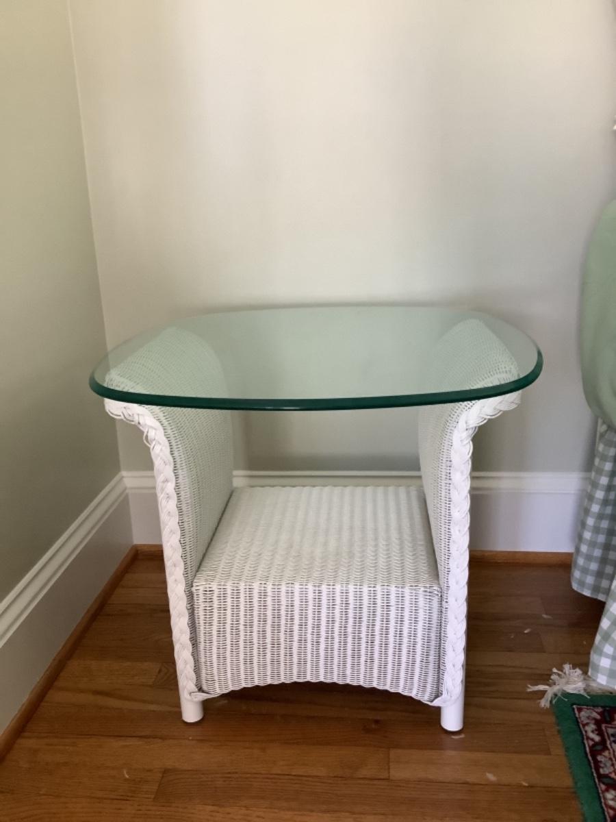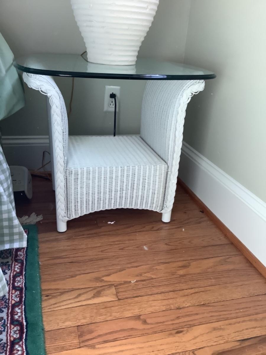 Q1038 Pair of Lloyd Flanders Glass Top Wicker Base End Tables