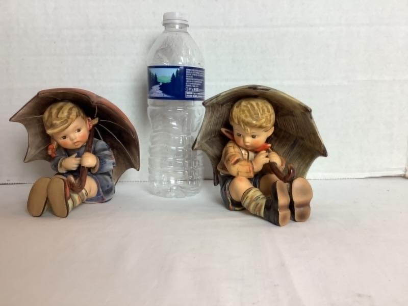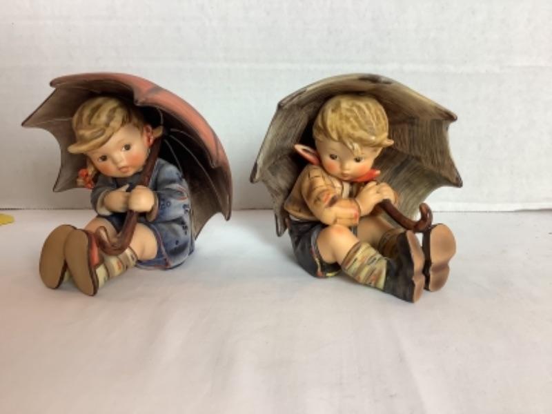 Excellent condition pair of large 5” tall Hummel Goebel Boy and Girl Umbrella Figurines signed on bottom