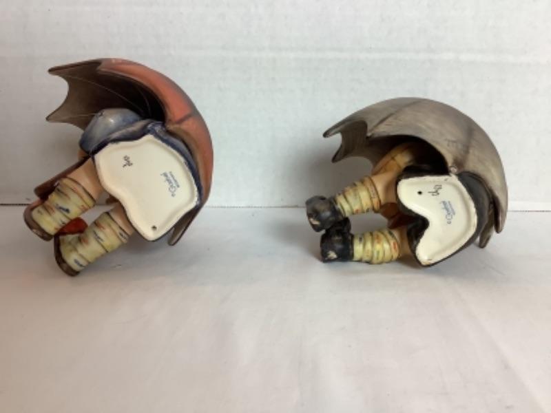 Q253 Pair of Large 5” Tall Hummel Goebel Boy and Girl Umbrella Figurines