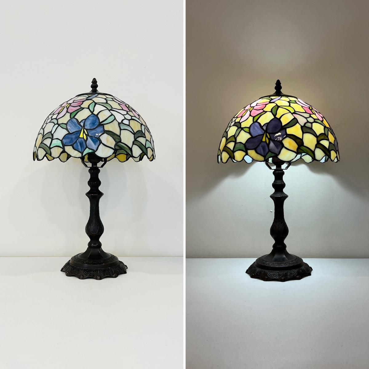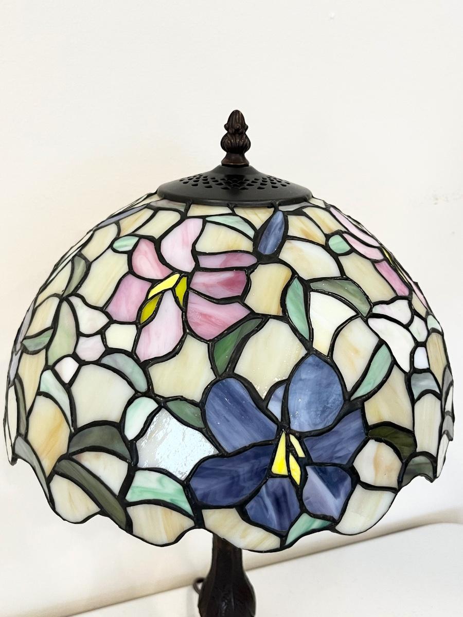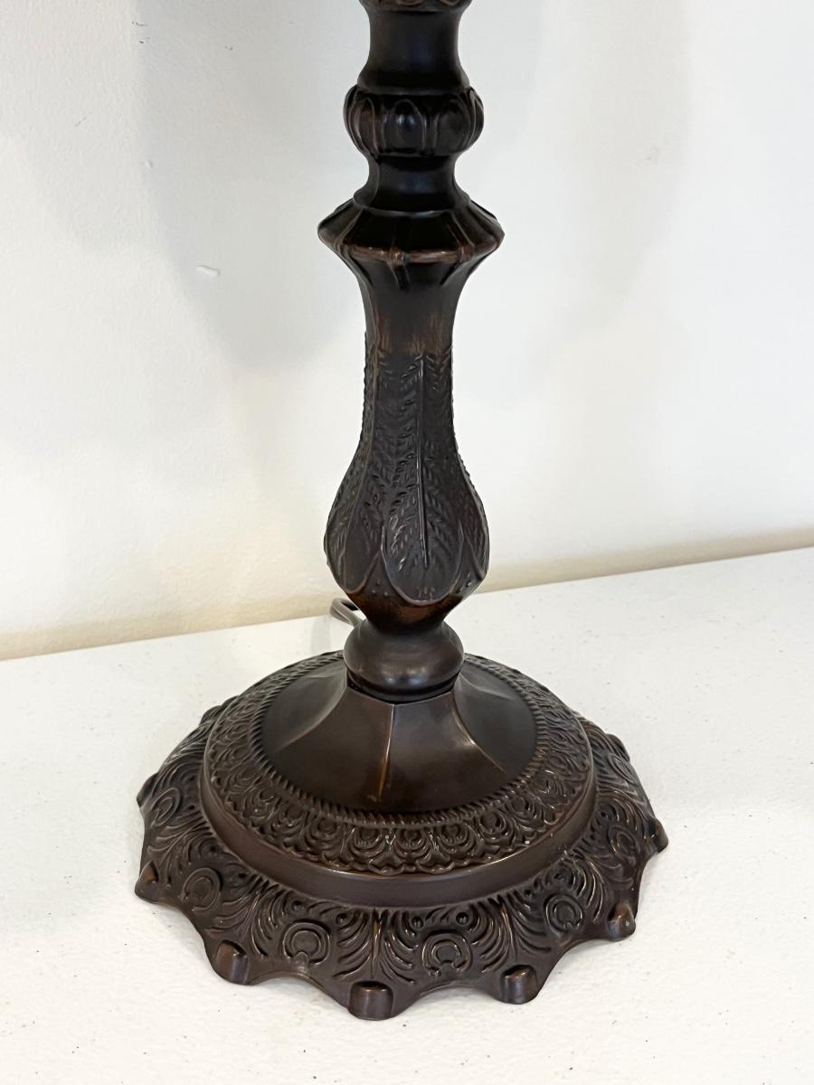 QOUIZEL LIGHTING ~ Single (1) ~ 19” Tiffany Style Metal Base Table Lamp ~ Stained Glass Shade