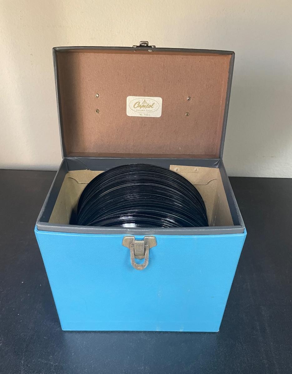 Vintage 45RPM Capitol Records Storage Carry Case with Records