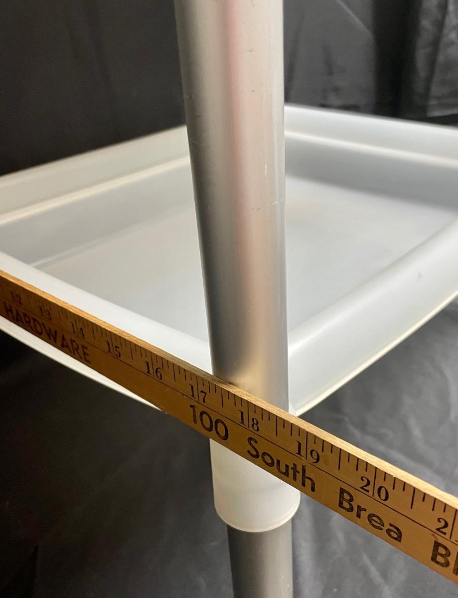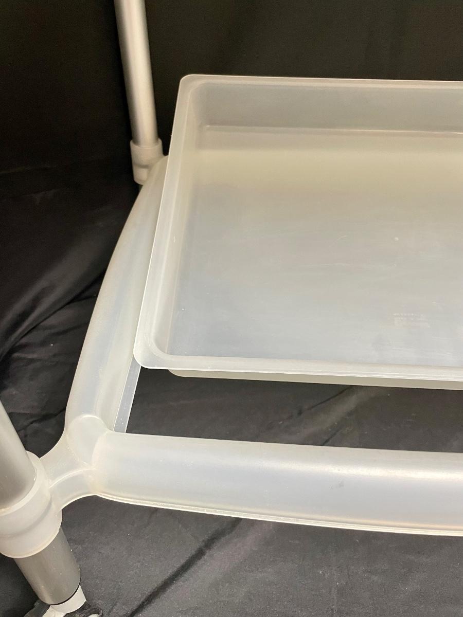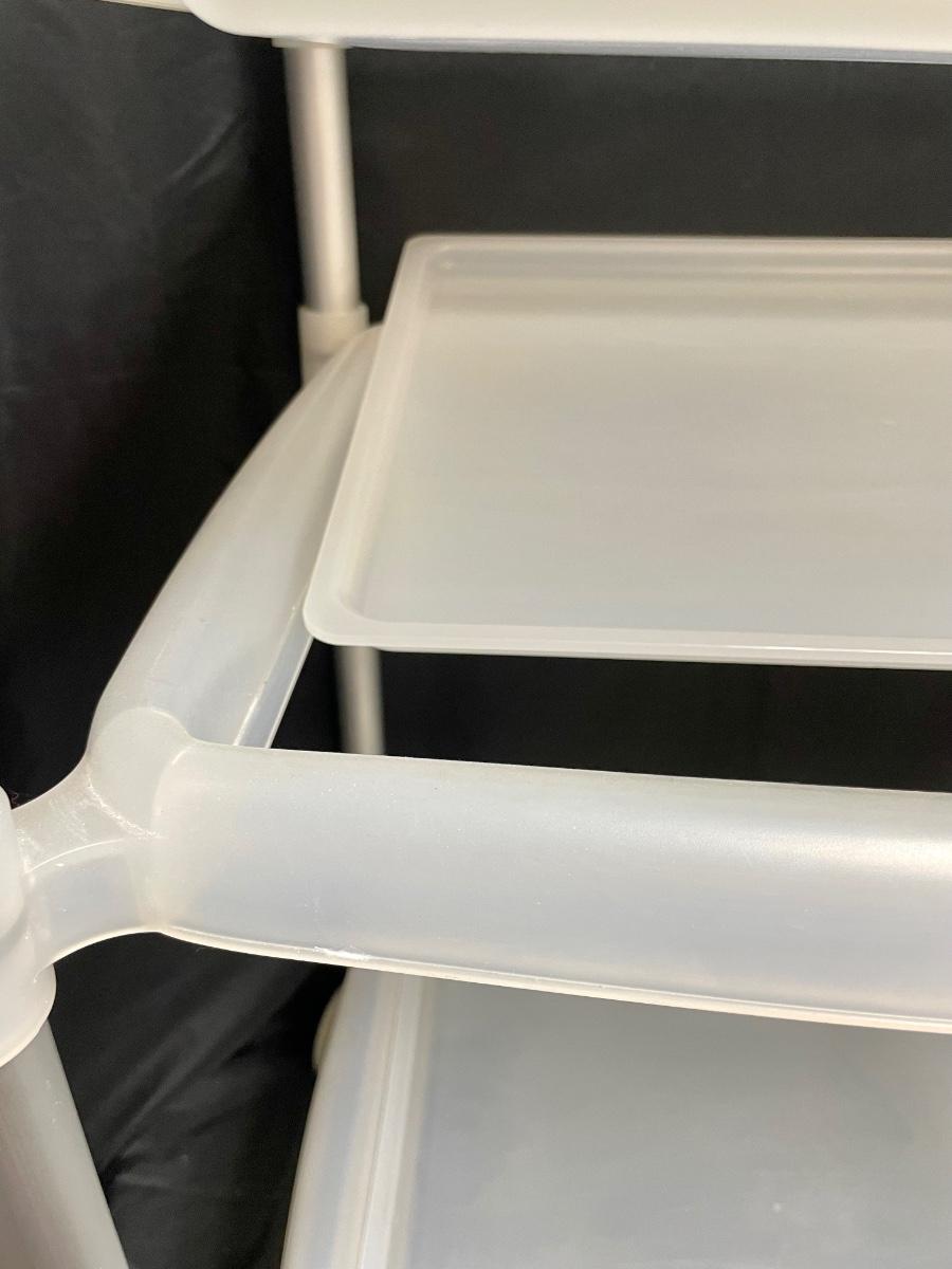 Plasic 3-tier cart made by Guzzini of Italy. Sturdy, with removable shelf bottoms to allow for carrying taller items on the botton shelf. Approx 30" tall, 18" deep and 22" wide.