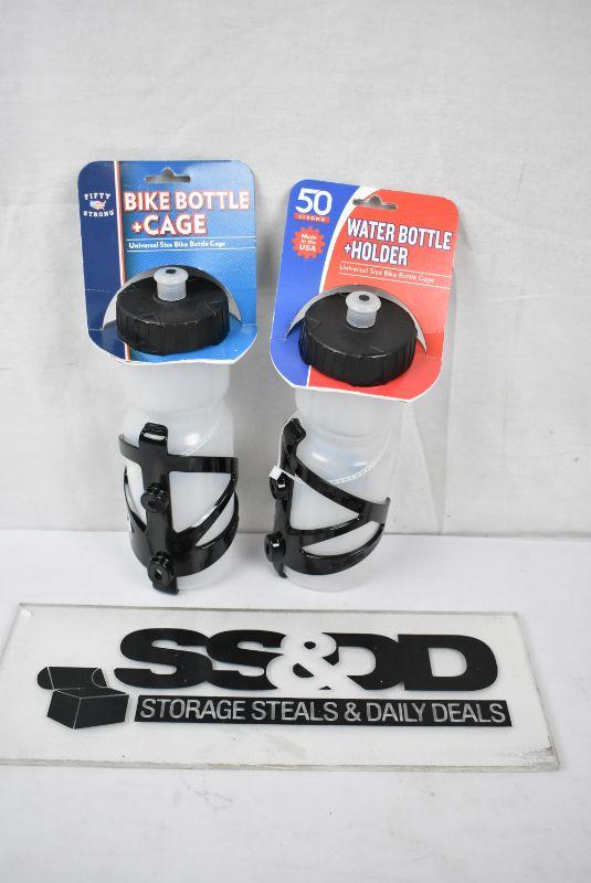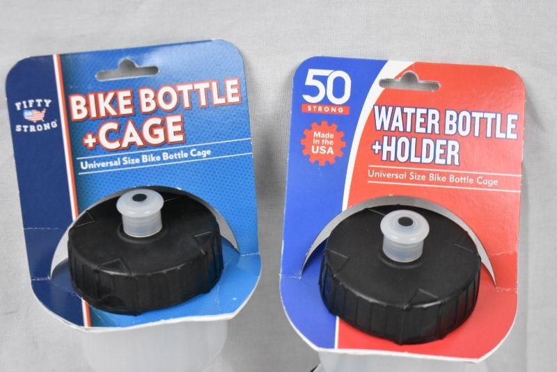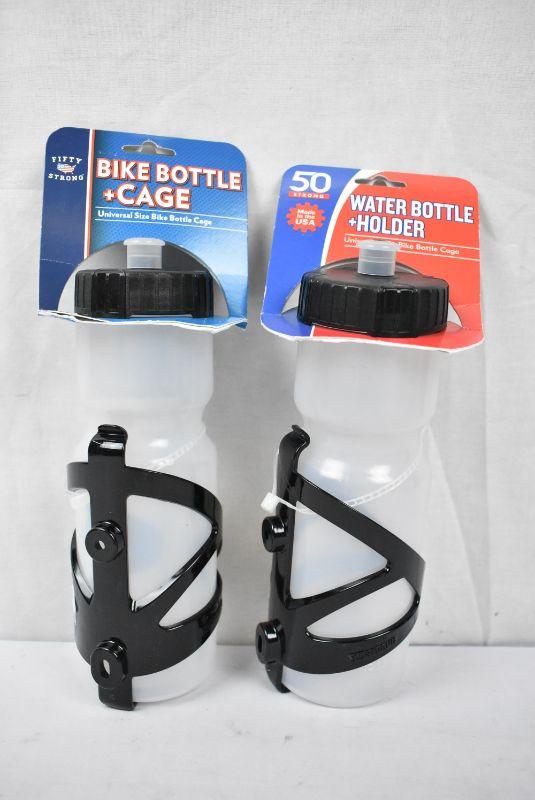 Qty 2 50 Strong Bike Water Bottle with Cage, 22 oz - New