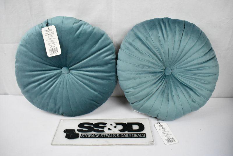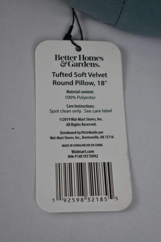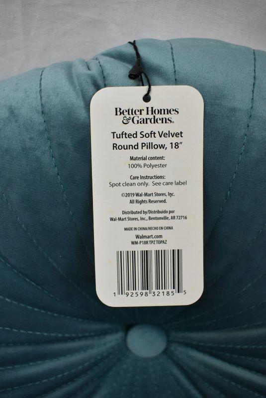 Qty 2 Better Homes & Gardens Round Tufted Velvet Pillow, 18" x 18", Topaz - New