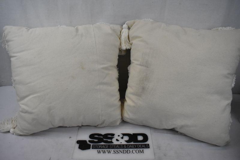 Qty 2 BH&G Tufted Trellis Decorative Throw Pillows, 20" x 20", Natural. WH Dirt