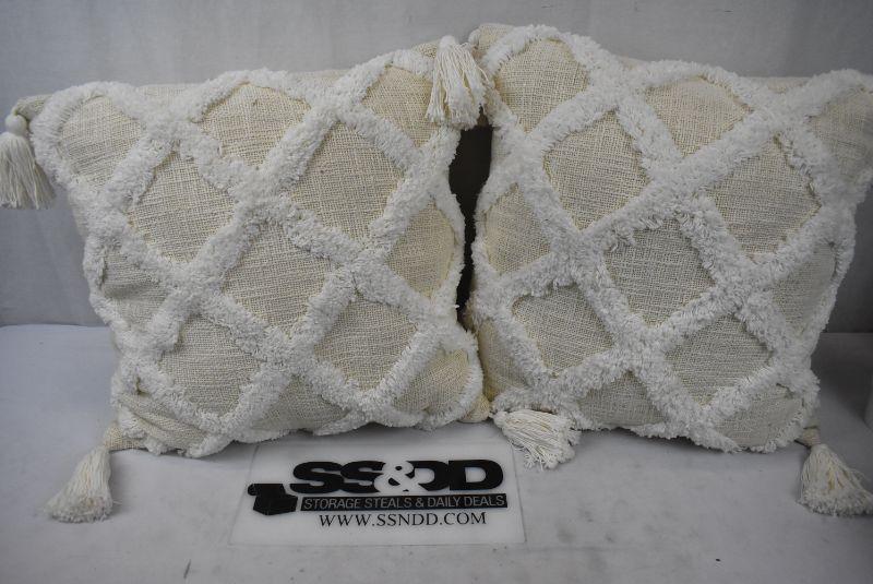 Qty 2 BH&G Tufted Trellis Decorative Throw Pillows, 20" x 20", Natural. Warehouse Dirt