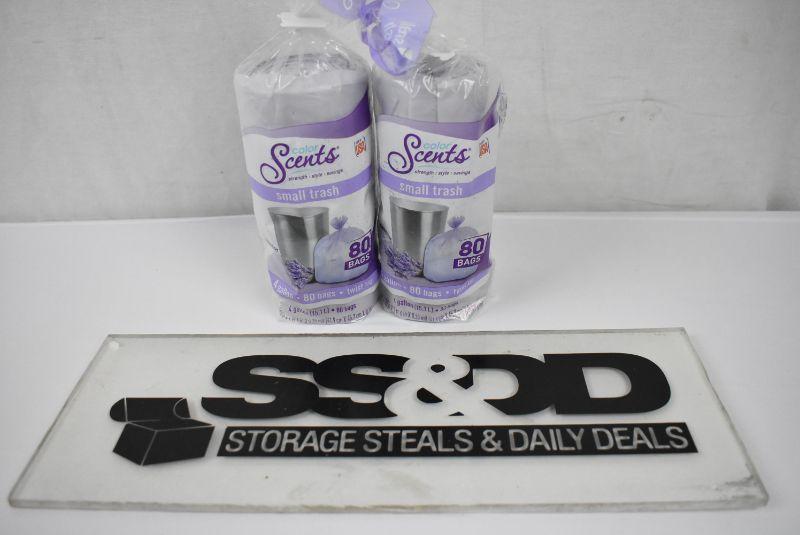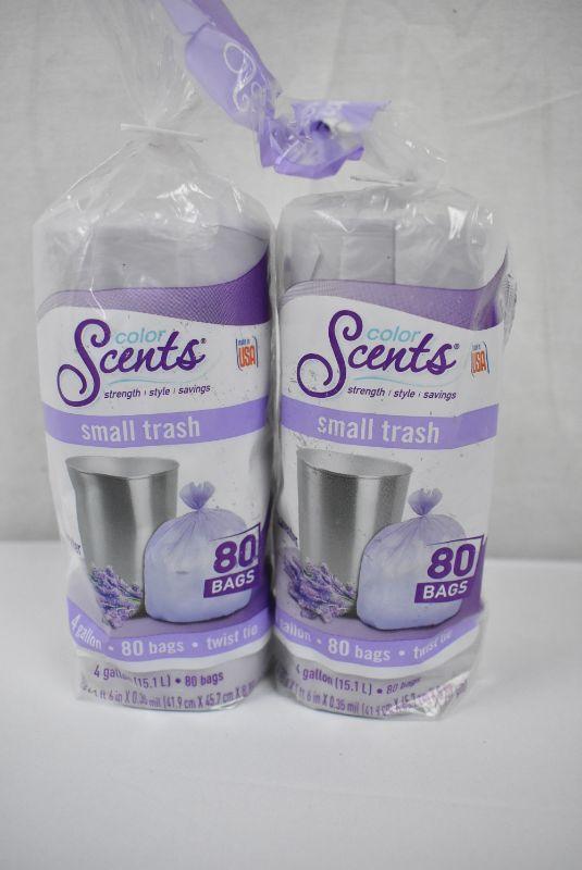 Qty 2 Color Scents Small Trash Bags, 4 Gal, 80 Bags (Twist Tie, Lavender) - New