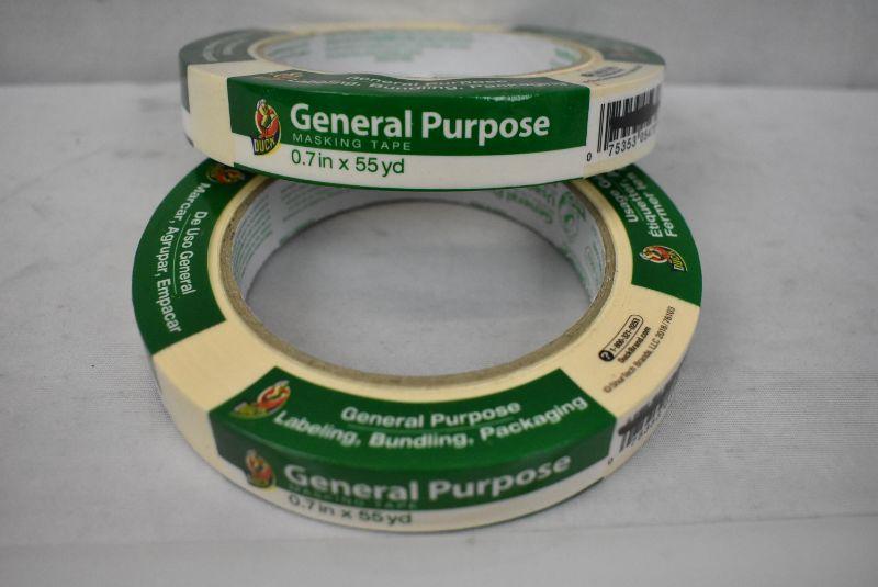 Qty 2 Duck Brand 7 in x 55 yd General Purpose Masking Tape, Beige - New