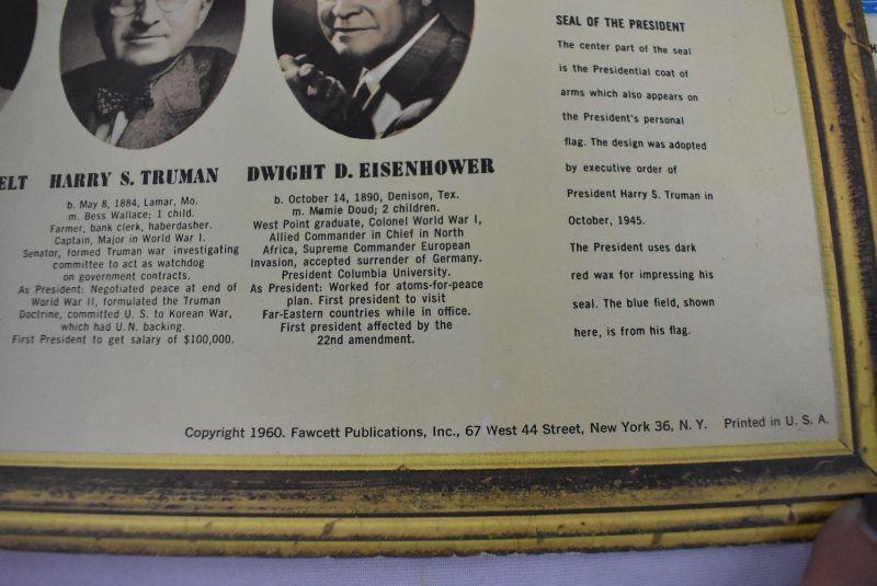 Qty 2 Educational President's Charts 1780-1960, Vintage 1960