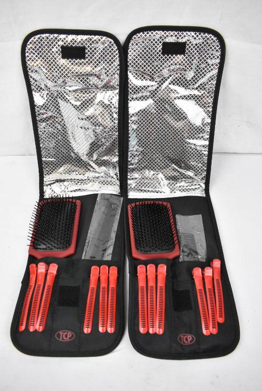 Qty 2 Hot Hair Tools Cool Carry Bag with Brush, Comb & Styling Clips - New