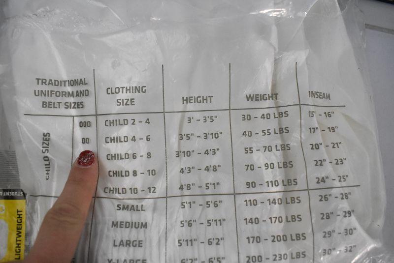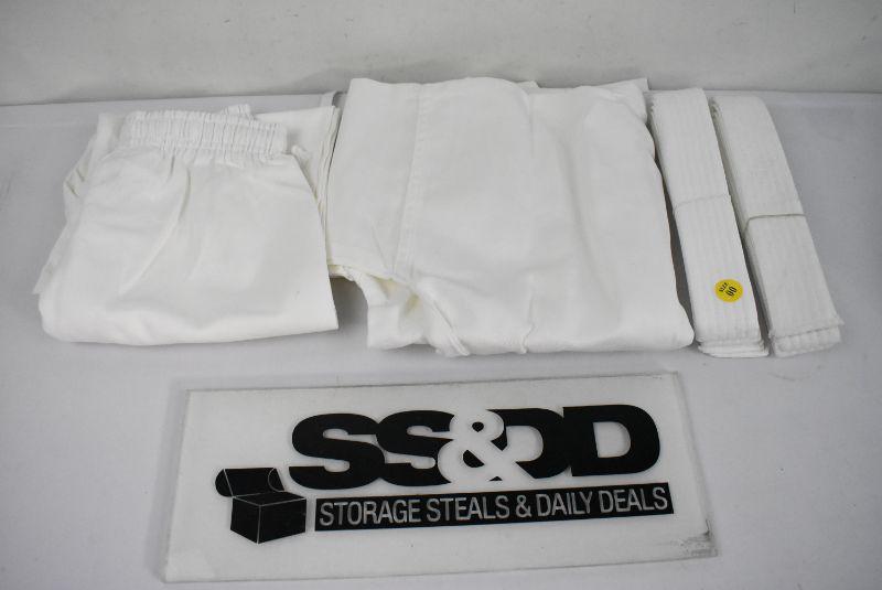 Lightweight Karate Uniform, White, Student Size 00 (Kids size 4-6) 2 White Belts - New