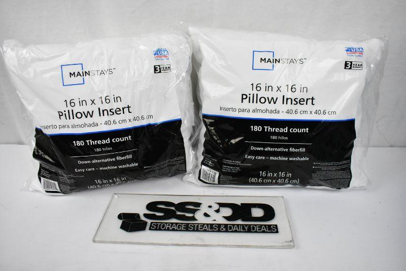 Qty 2 Mainstays Decorative Pillow Insert in 100% Polyester 16" x 16" - New