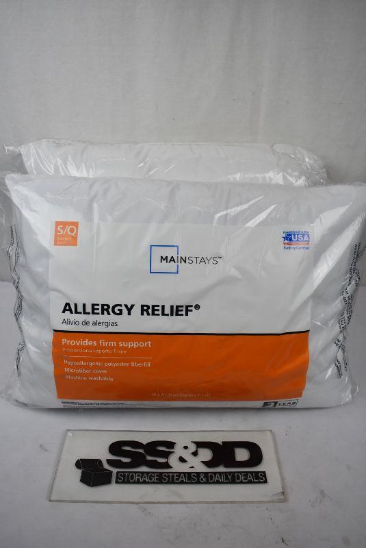 Qty 2 Mainstays Allergy Relief Hypoallergenic Polyester Fiberfill Firm Support Pillows, Standard Size - New