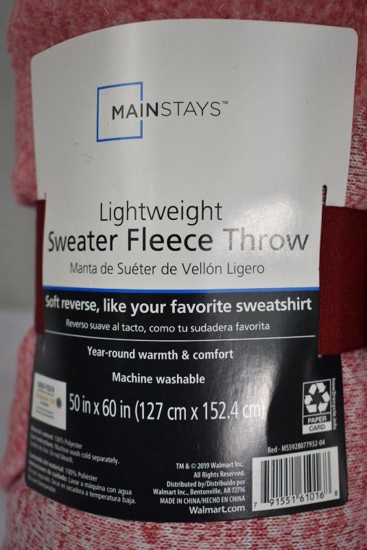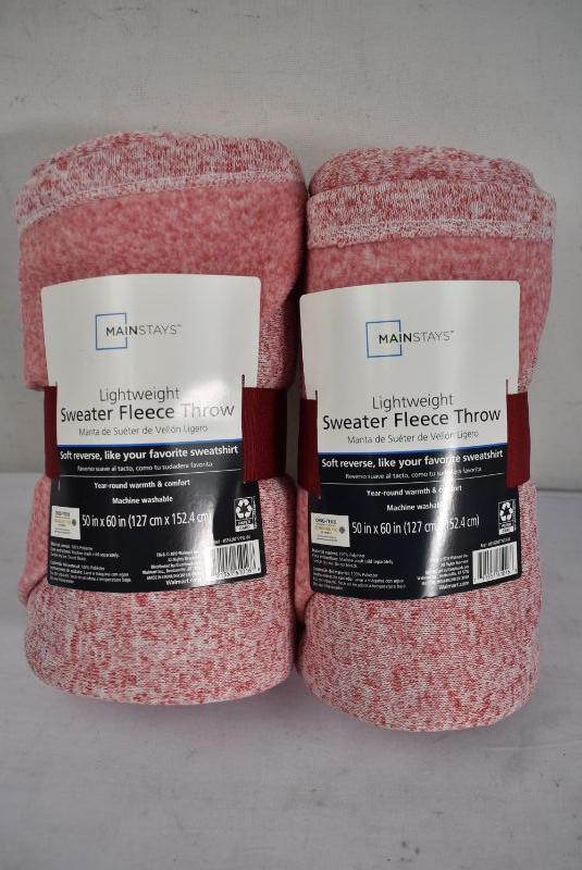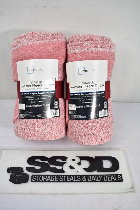 Qty 2 Mainstays Sweater Fleece Throw Blankets, 50" x 60" each, Red - New