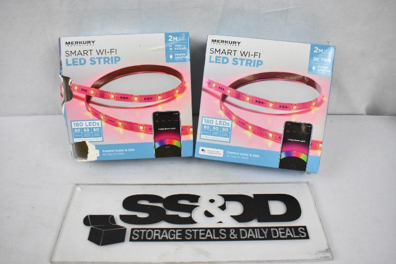 Qty 2 Merkury Innovations Color Changing Smart Wi-Fi LED Light Strip Kit - 180 Super Bright LEDs - 6.5 ft. Open Box, $30 Retail - New