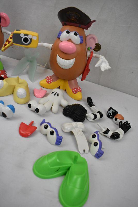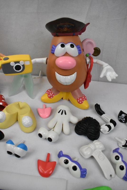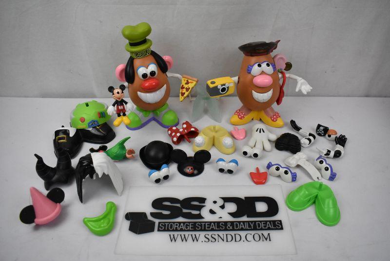 Qty 2 Mr Potato Heads with Disney accessories, Large lot of approx 40 pieces