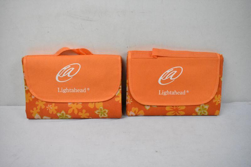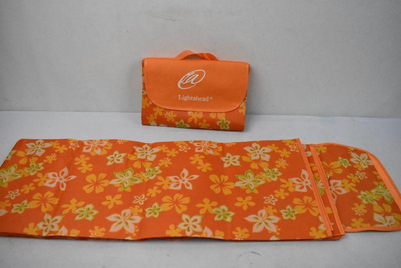 Qty 2 Outdoor Foldable Mat Picnic Blanket, Orange Floral - No packaging - New
