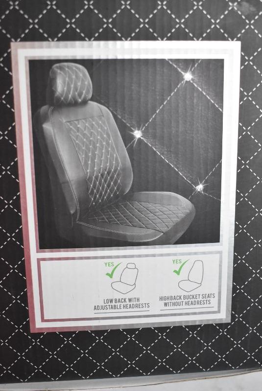 Qty 2 Premium Diamond Seat Covers w/ Crystals Swarovski, Black, Retail $42 - New