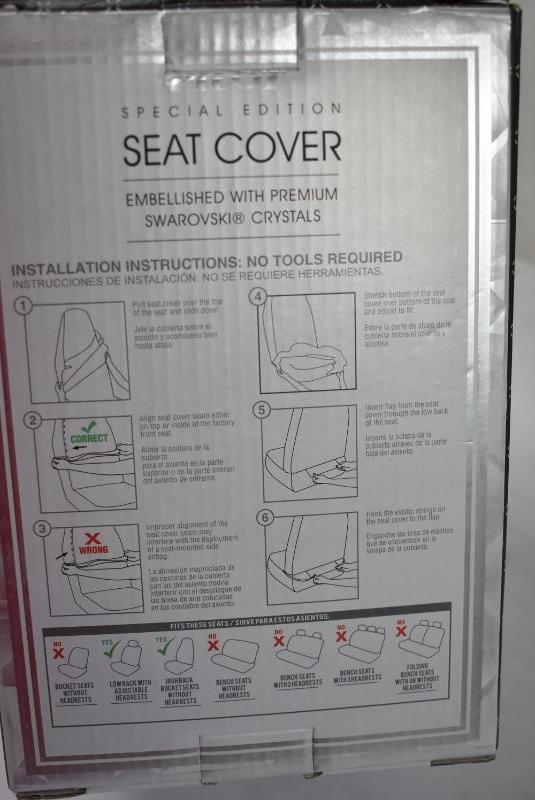 Qty 2 Premium Diamond Seat Covers with Crystals from Swarovski, Black, Retail $42 - New