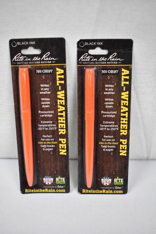 Qty 2 Rite in the Rain Weatherproof Orange Ballpoint Pen - Black Ink - New
