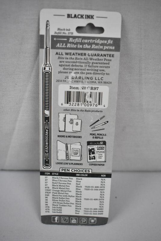Qty 2 Rite in the Rain Weatherproof Orange Metal Retractable Ballpoint Pen - Black Ink (No. OR97) - New