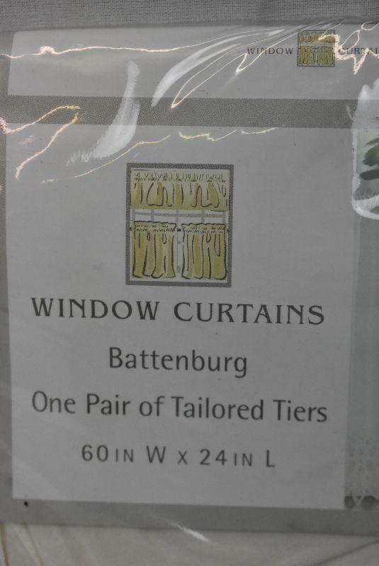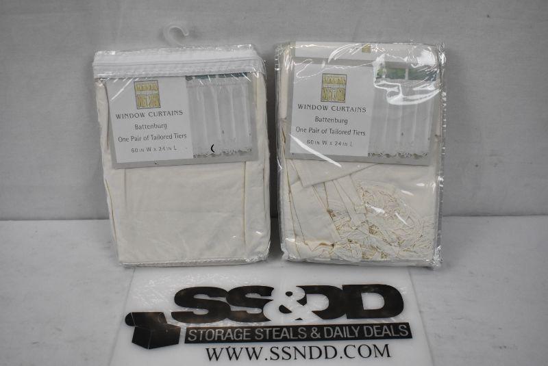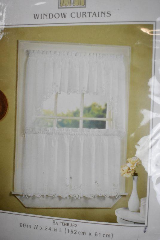 Qty 2 Sets Kitchen Window Curtains Battenburg Rod Pocket 60x24"/ea, cream - New