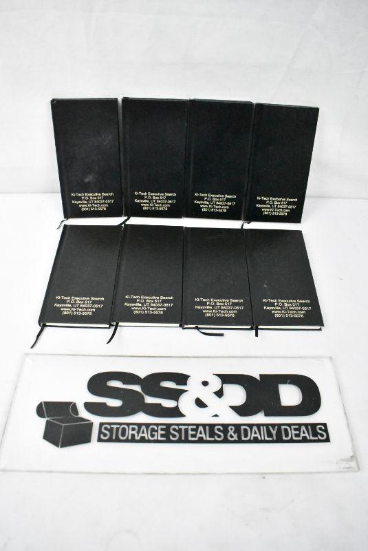 Qty 2 Small Black Notebooks. Hardcover. Front branding. Unused