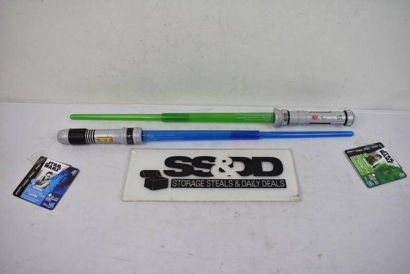 Qty 2 Star Wars Lightsaber Academy: 1 Blue & 1 Green Lightsaber Toy with Light-up Extendable Blades, $20 Retail - New