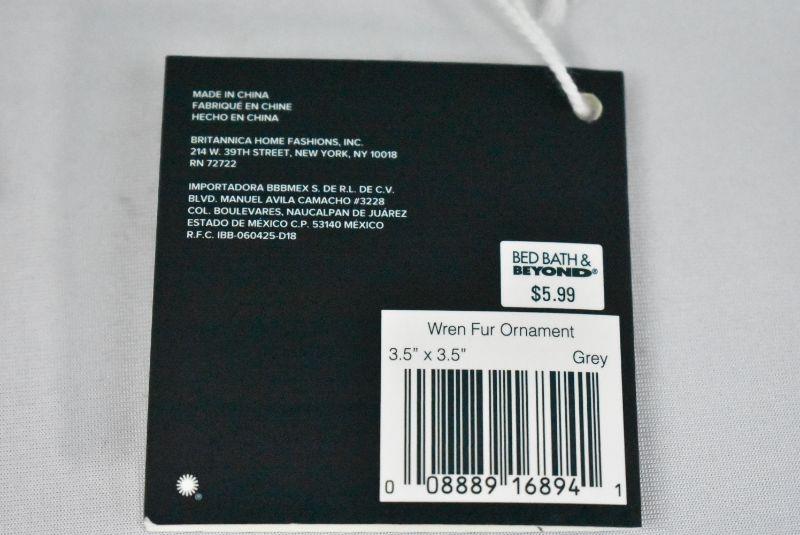 Qty 2 Ugg Wren Fur Ornaments, Gray - New
