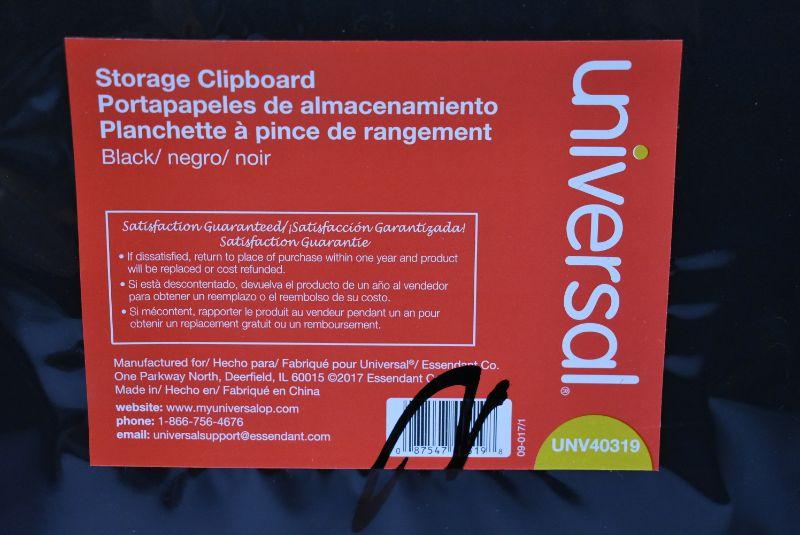 Qty 2: Universal Storage Clipboard w/Pen Compartment, 1/2" Capacity, Black - New
