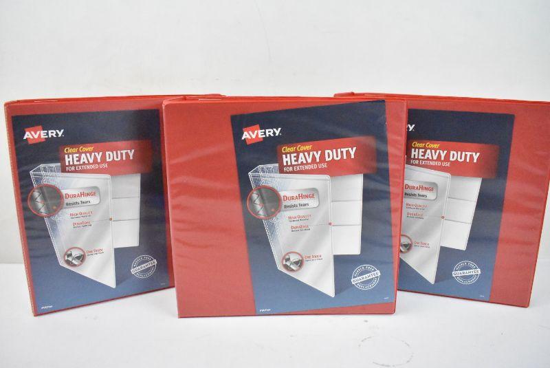Qty 3 Avery Heavy-Duty View Binder w/Locking 1-Touch EZD Rings, 3" Cap, Red - New