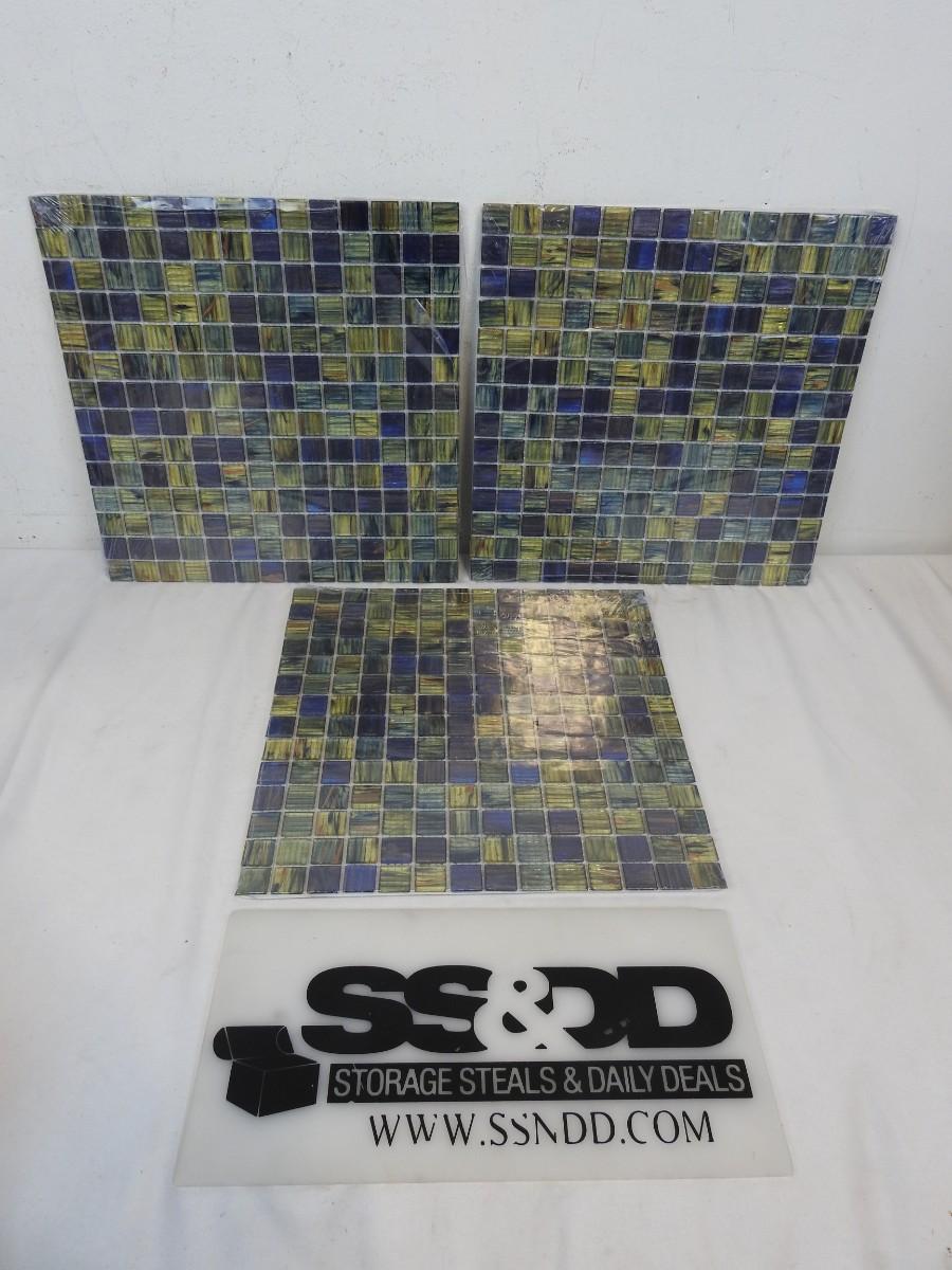Qty 3 Glass Mosaics, 12"x12" each, "Vineyard" Color Green/Blue/Yellow - New