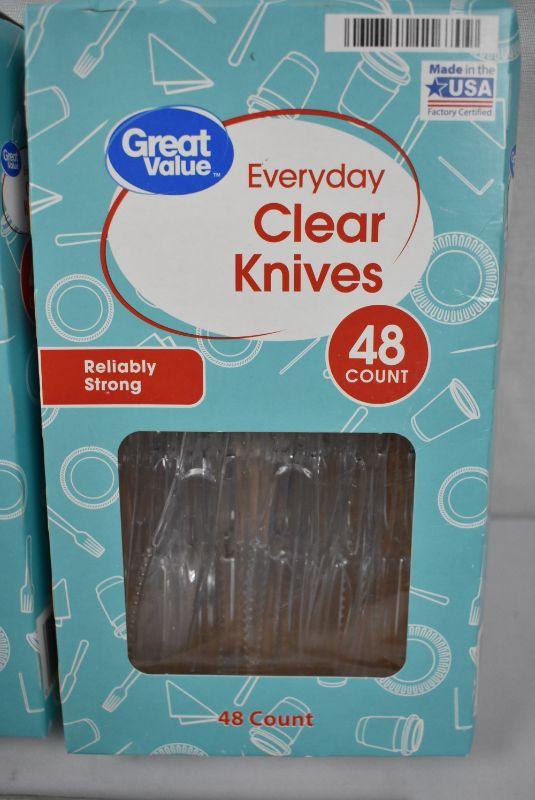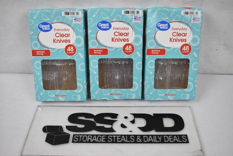 Qty 3 Great Value Premium Clear Cutlery Knives, 48 count in each box - New
