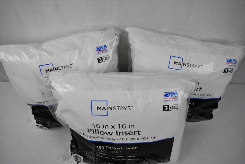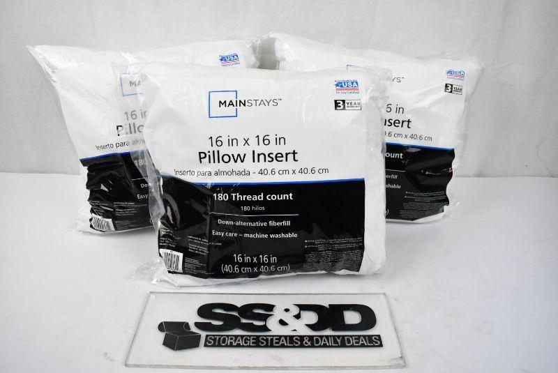 Qty 3 Mainstays Decorative Pillow Insert in 100% Polyester 16" x 16" - New