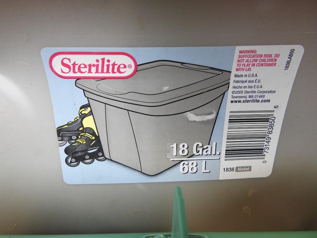 Qty 3 Plastic Storage Bins with Lids by Sterilite/Rubbermaid. Tan & Green