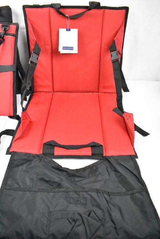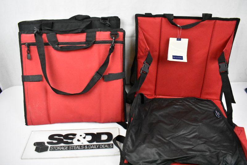 Qty 3 Stadium Seats. 2 Red 1 Black with Handles & Shoulder Straps & Backpack Straps