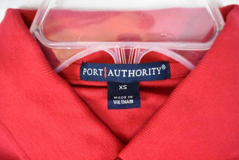 Qty 3 Women's Polo Style Shirts: Orange (Small) White (Small) Red (XS)