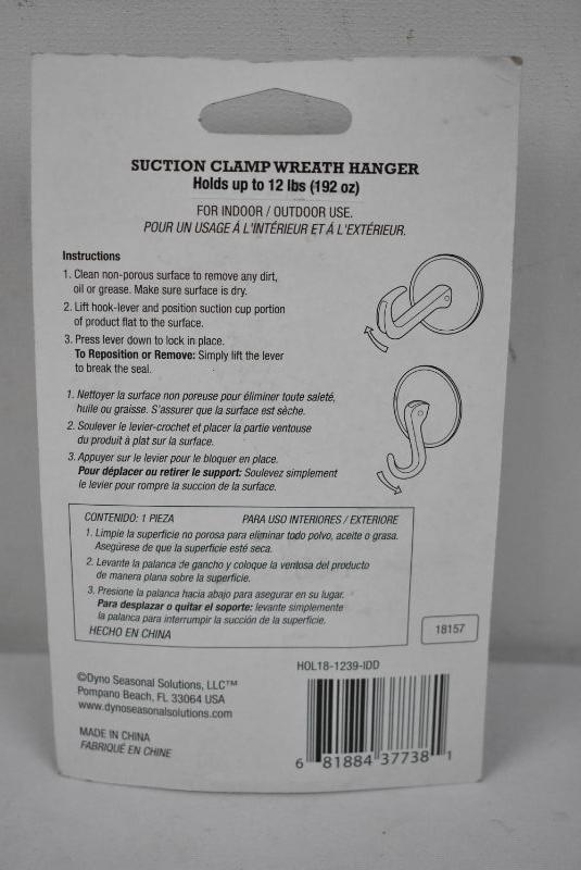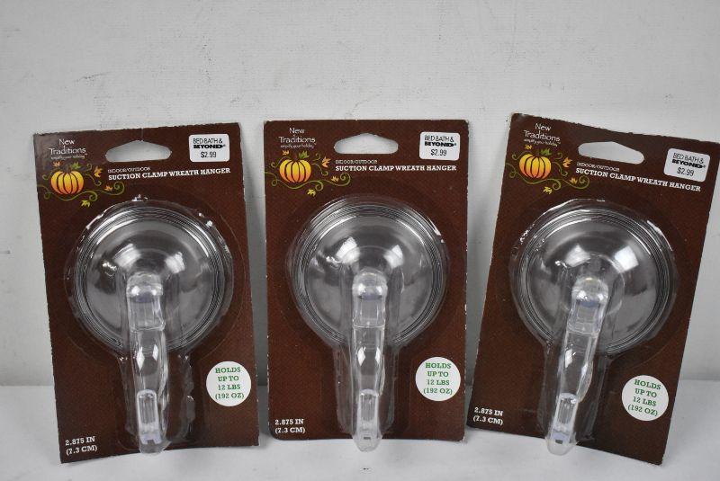 Qty 3 Wreath Hangers with Suction Clamps - New