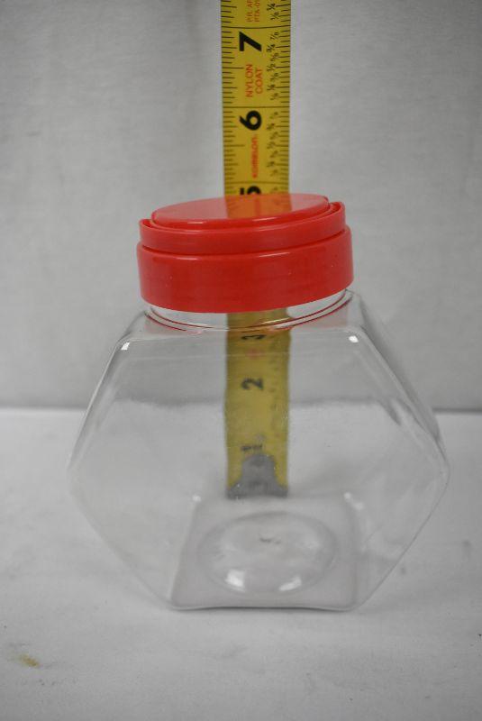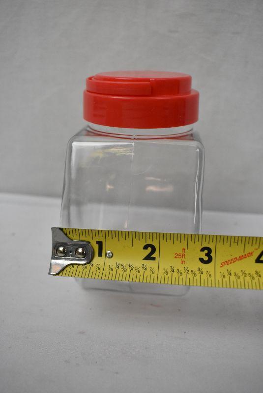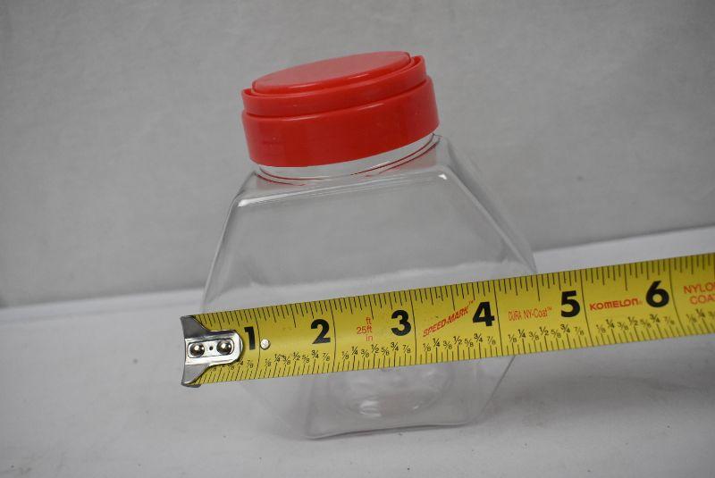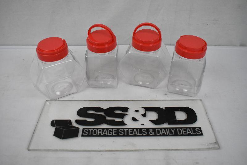 Qty 4 Small Hard Plastic Containers, Clear with Red Lids - New