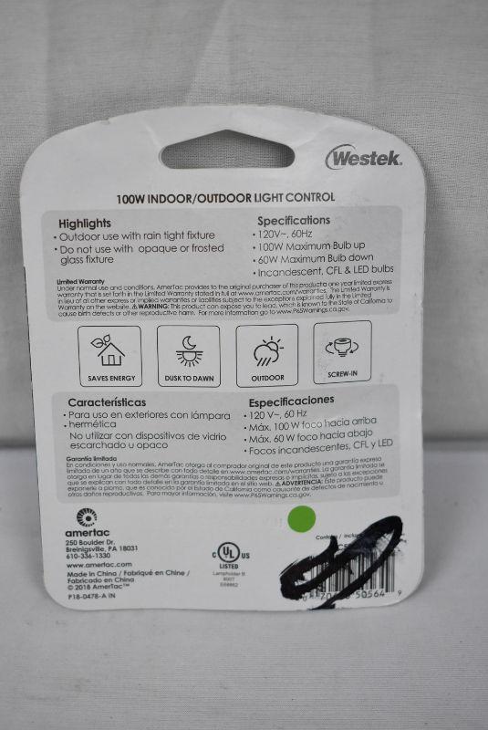 Qty 4: Westek Indoor/Outdoor Dusk to Dawn Light Control, White. 1 with packaging, 3 no packaging, $32 Retail - New