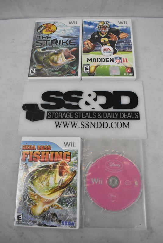Qty 4 Wii Games - Bass, Disney Enchanted Journey, Madden 11, The Strike