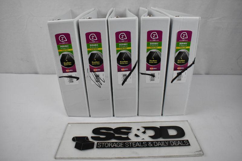 Qty 5 Avery 2" Durable View Binder, Slant Rings, White, Warehouse dents/damage